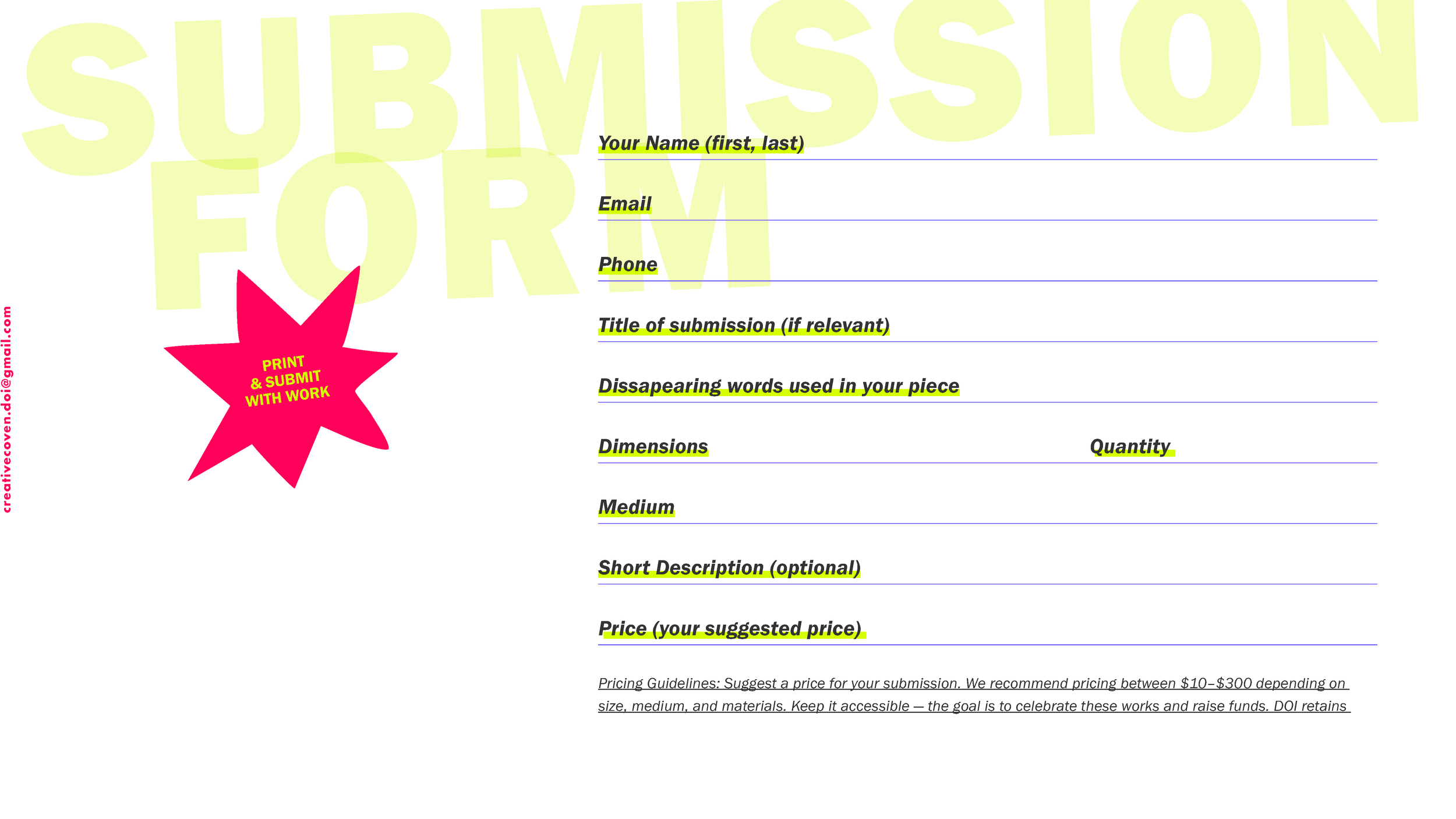 READ GUIDELINES, THEN PRINT AND SUBMIT THE FORM WITH YOUR WORK